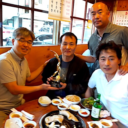 멋진 트로피에 친구들 기쁨&만족&부러움
