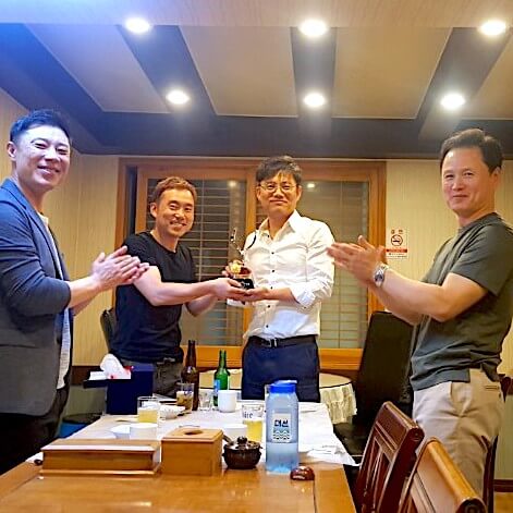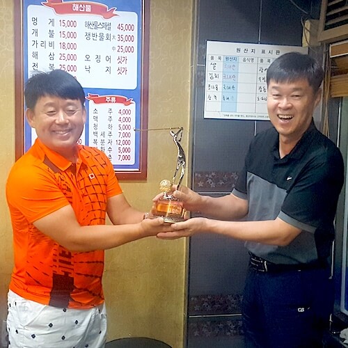 테너 하만택 교수님 싱글기념 라운딩에서 기념트로피 증정